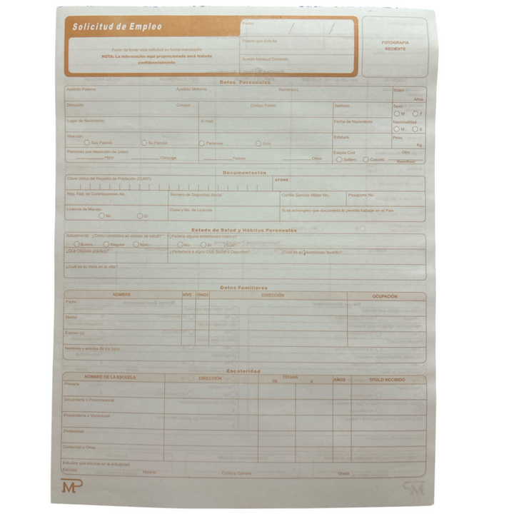 BLOCK SOLICITUD EMPLEO C/25H - 1pz
